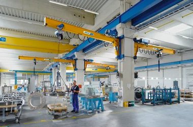 Diseñada para su fijación a una pared o a una columna. Esta grúa de puesto de trabajo ofrece un radio de giro de 180° con un alcance de brazo de hasta 10 m y una capacidad de carga de hasta 5 t. Gracias al diseño de la grúa pluma mural VW, las dimensiones de la nave se aprovechan de tal forma que se alcanza una máxima altura de elevación para el traslado de las cargas.