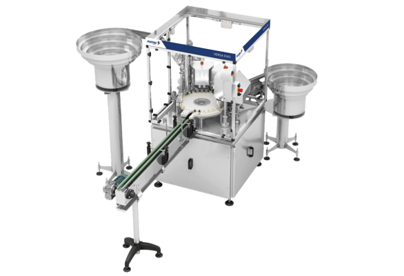 Equipo intermitente, que a cada ciclo es capaz de realizar diferentes procesos de automación mecánica en un único y compacto bloque, desarrollado para envasar frascos a través del sistema de dosificación volumétrico y cierre magnético, con selección de tapas manual o automático (tecnología aplicada en el sistema de control de torque).