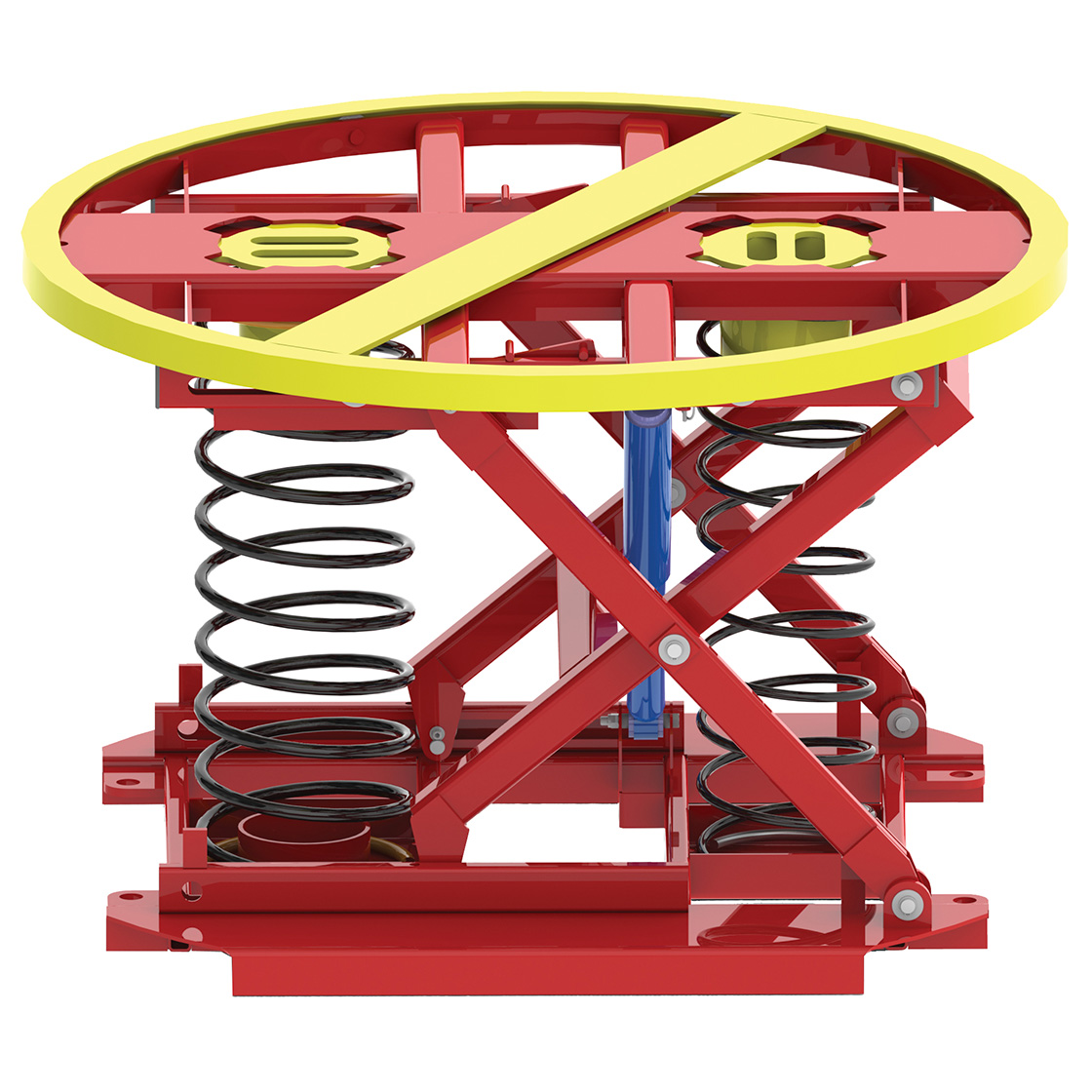 Nivelador de paletas con resorte autonivelante avanzado, diseñado para mejorar la eficiencia y la seguridad durante la carga y descarga de paletas. Ajusta automáticamente la altura de las cargas mediante un sistema de resortes y amortiguadores, que admite pesos de entre 400 y 4,500 libras.