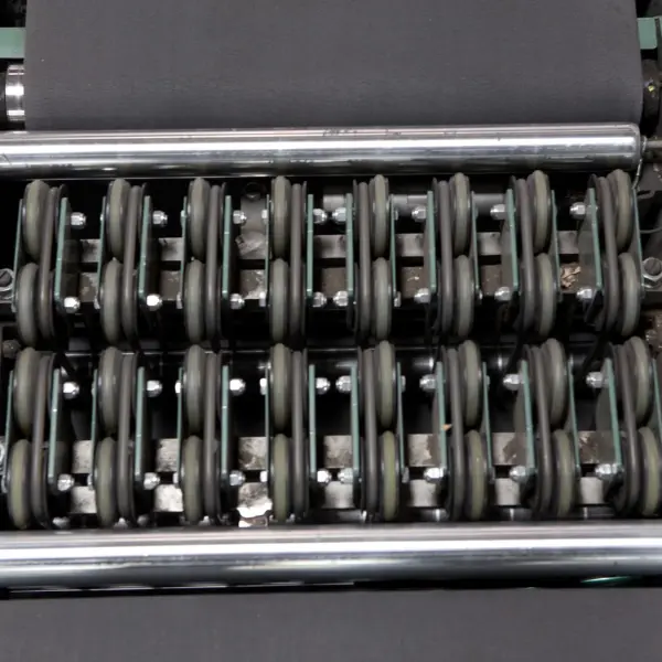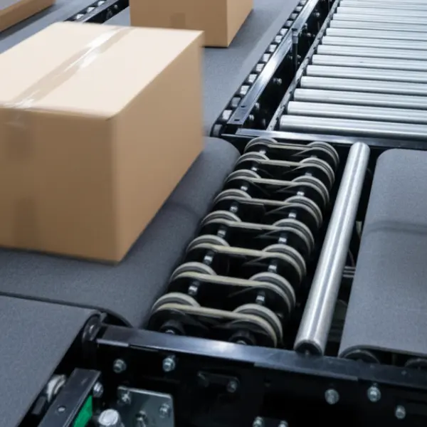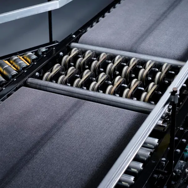 Cuentan con dos series de ruedas ajustadas al nivel de las correas de alimentación y salida. Estas ruedas giran para sacar el producto de la línea y enviarlo a otras áreas del sistema. El producto está diseñado para minimizar las desviaciones omitidas mientras se maximiza el rendimiento.