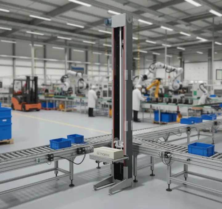 Transportador vertical discontinuo que destaca por su robustez y que apenas requiere mantenimiento. Gracias a su esqueleto de acero, la construcción se mantiene sumamente estable bajo cualquier circunstancia.