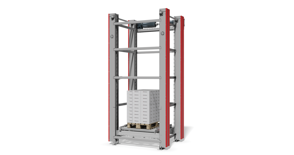 Solución perfecta para capacidades de hasta 100 palets por hora. Debido a la pequeña superficie que ocupa, el elevador se adapta a casi cualquier entorno. Esta unidad compacta es muy fácil de integrar en su sistema de transporte, y puede equiparse con un transportador de rodillos o con un transportador de cadena.